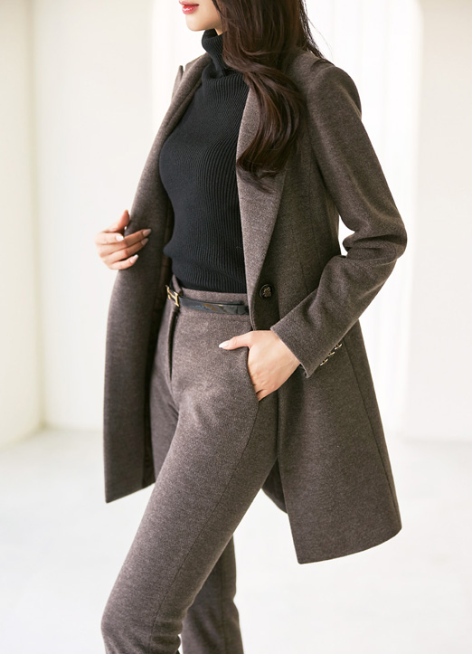 도톰한 두께감에 포근한 감촉을 주는 고급 울 블렌드 소재에