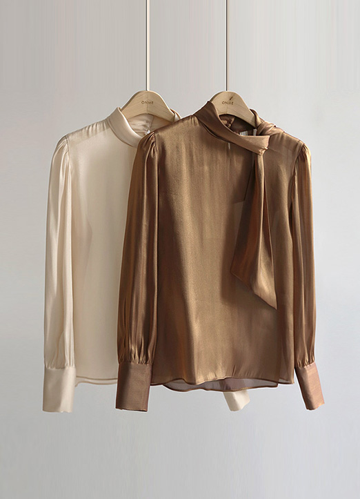 오묘한 빛깔로 화사하게 빛나는 새틴 블라우스에요~