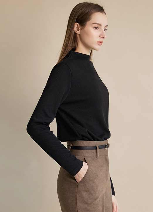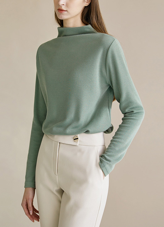 [LouisAngel] (4 Colors) Shirred Waist Mock Neck Top