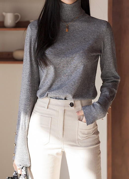 소매에 트임과 금장버튼 디테일로 페미닌함이 가득하며
