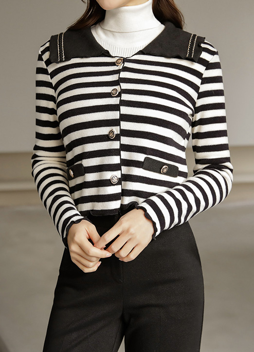 ※에핏 크루즈 포근포근 세일러 스트라이프 가디건 의