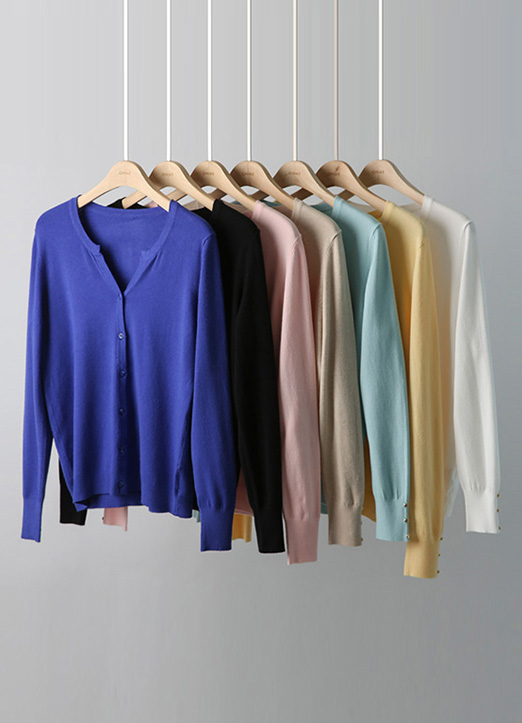 [Louis Angel] (7 Colors) Soft Touch Slit V-Neck Button Cuff Knit Cardigan