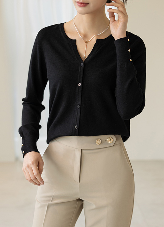 [Louis Angel] (7 Colors) Soft Touch Slit V-Neck Button Cuff Knit Cardigan