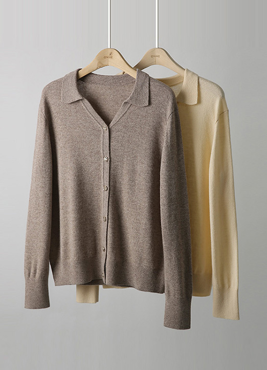 울과 캐시미어가 블렌딩되어 소재만으로 고급스러움이 느껴지는 가디건