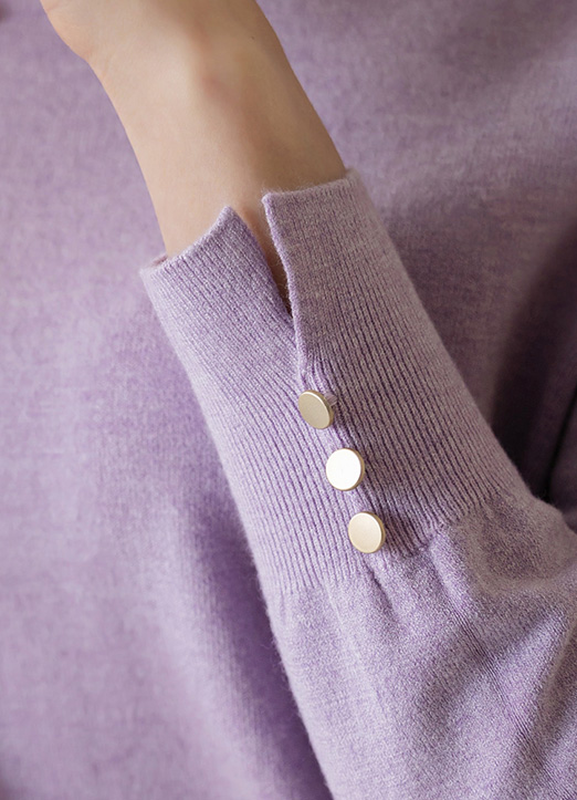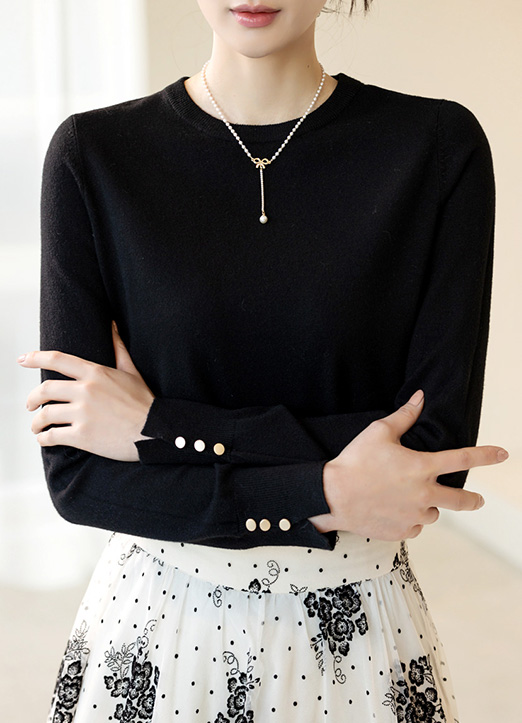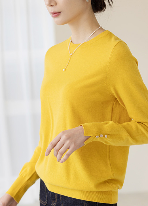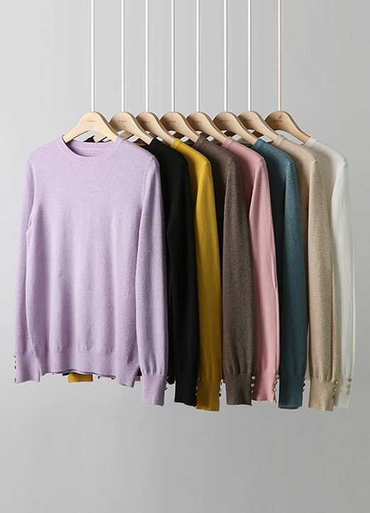 [Louis Angel] (8 Colors) Button Slit-Cuff Round Neck Knit Top