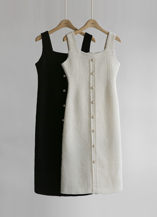 Wool30 Pearl Button Tweed Bustier Dress