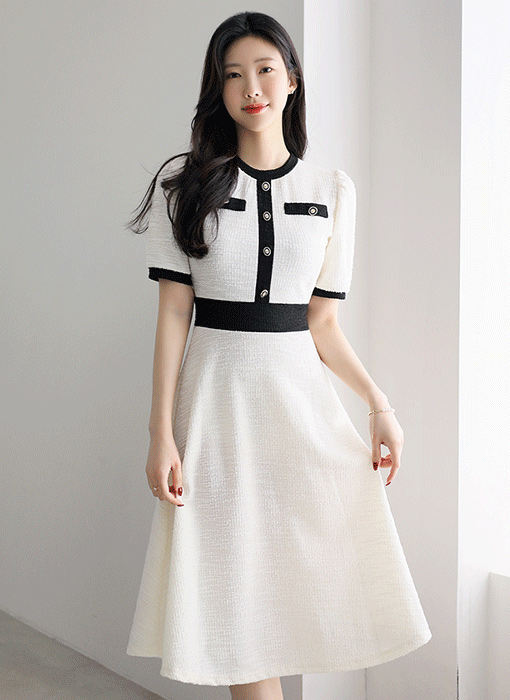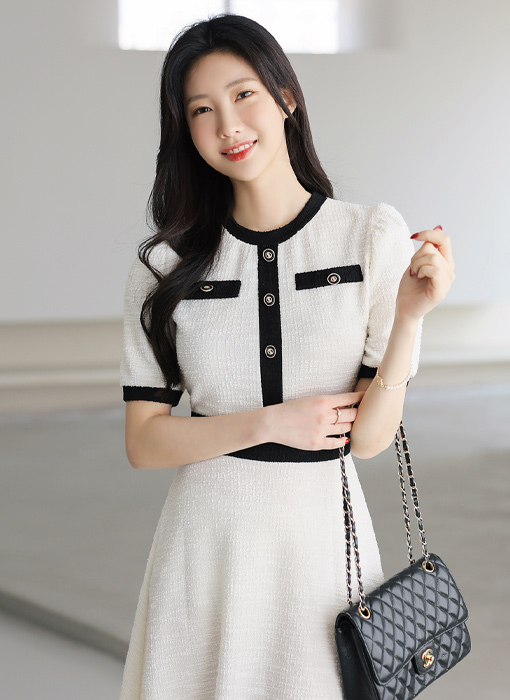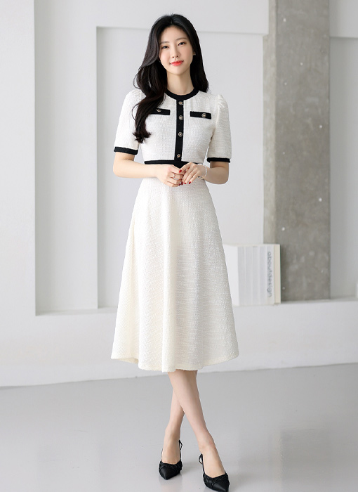 트위드 소재로 페미닌함이 가득 느껴지는 원피스에요 :)