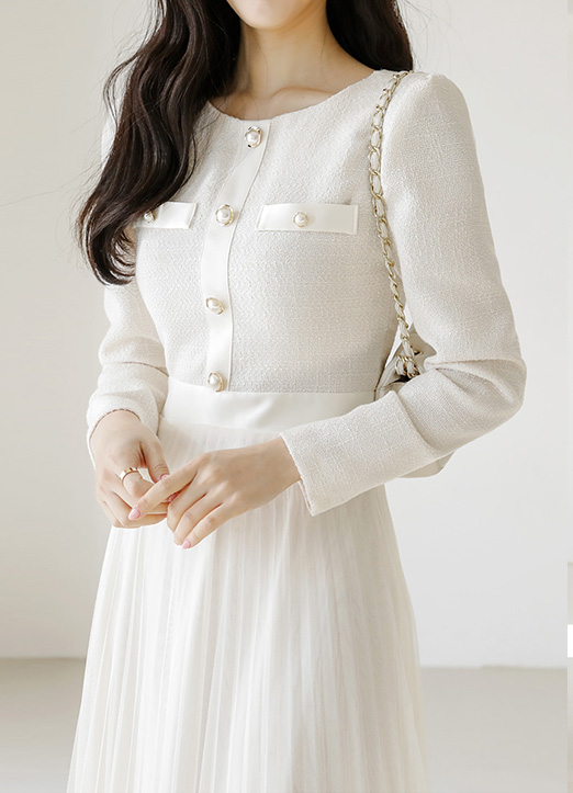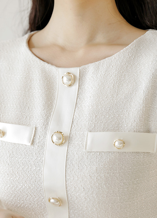 라인 배색과 진주 버튼이 더해져