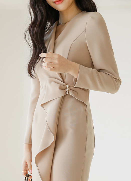 한쪽 사이드 리본 셔링이 드롭되는 디테일로
