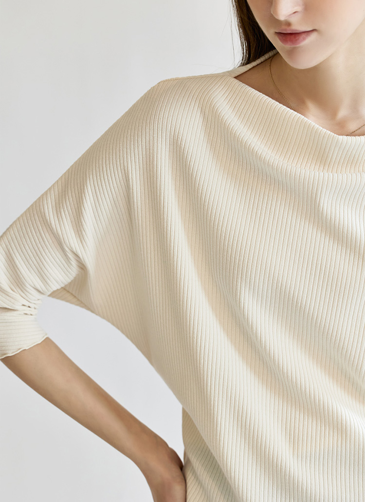 [The Onme] Lettuce Edge Boat-Neck Dolman Sleeve Ribbed Knit Top