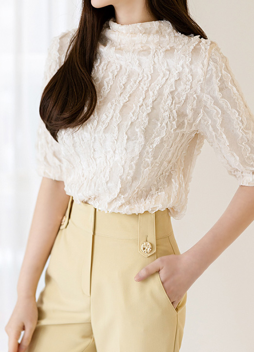 [Louis Angel] Lace Frilled Half Sleeve Velvet Top
