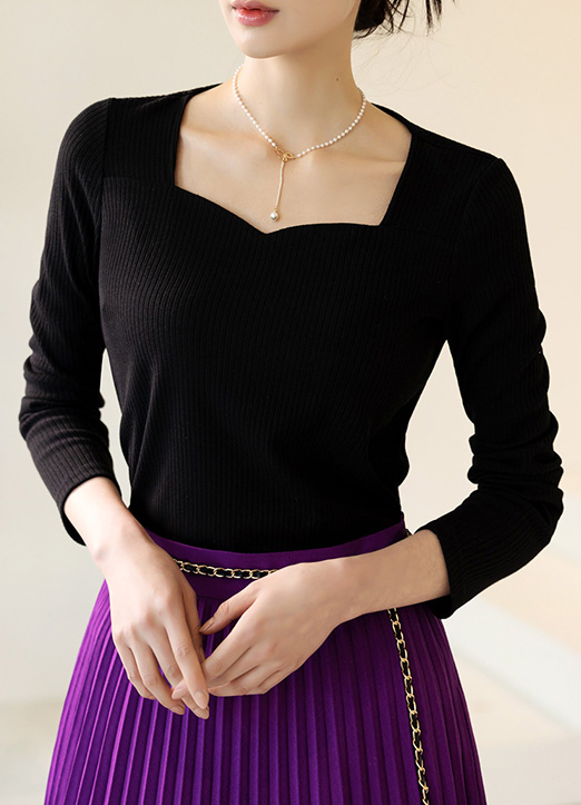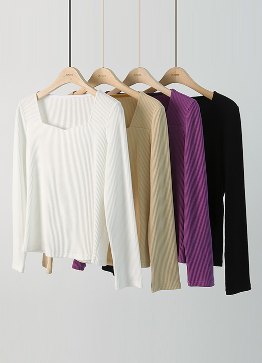 [Louis Angel] (4 Colors) Heart-neck Slim Stretch Ribbed Top