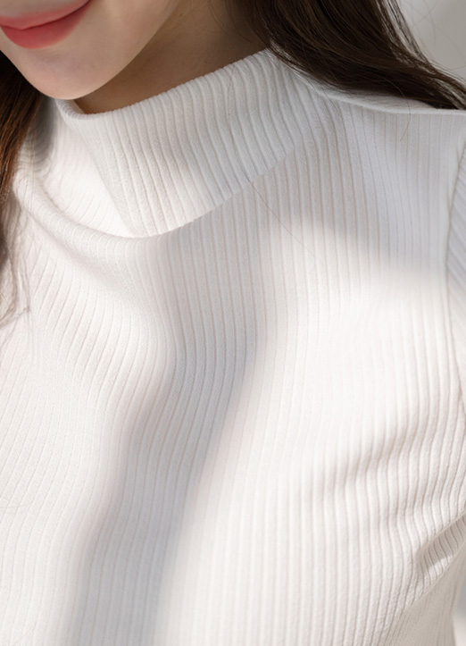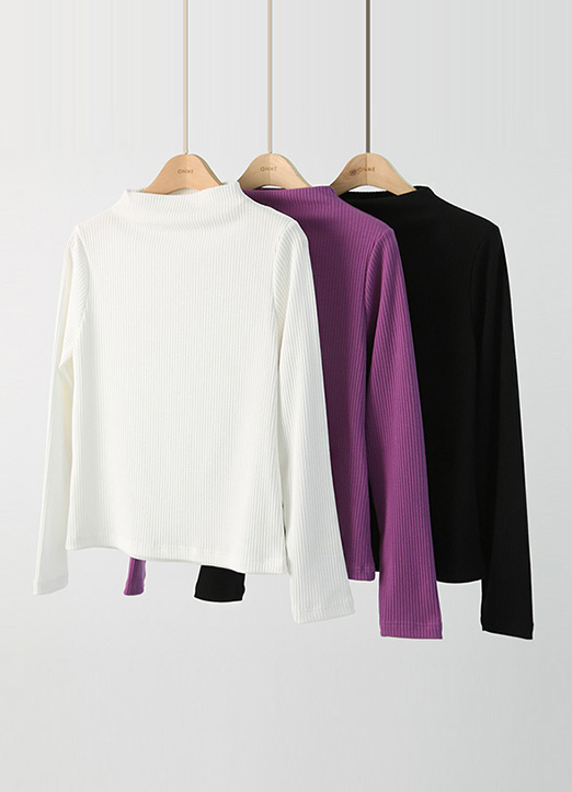 [Louis Angel] Mock Neck Simple Ribbed Top