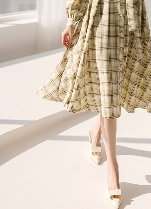 [Louis Angel] Pearl Button Self-Belted Check Shirt Dress
