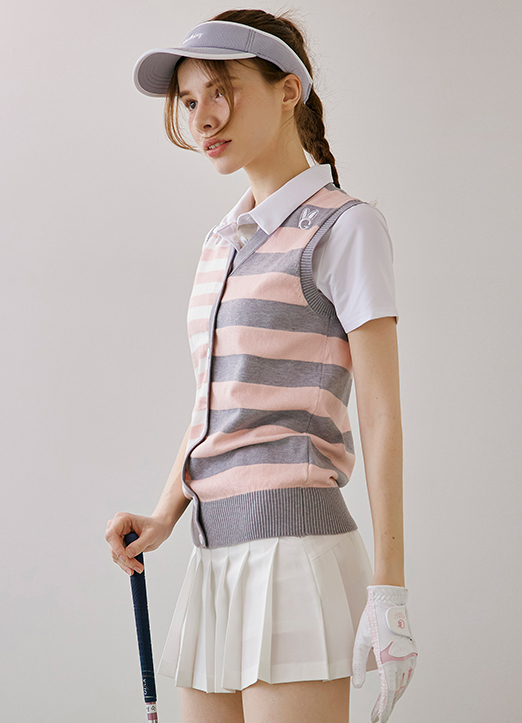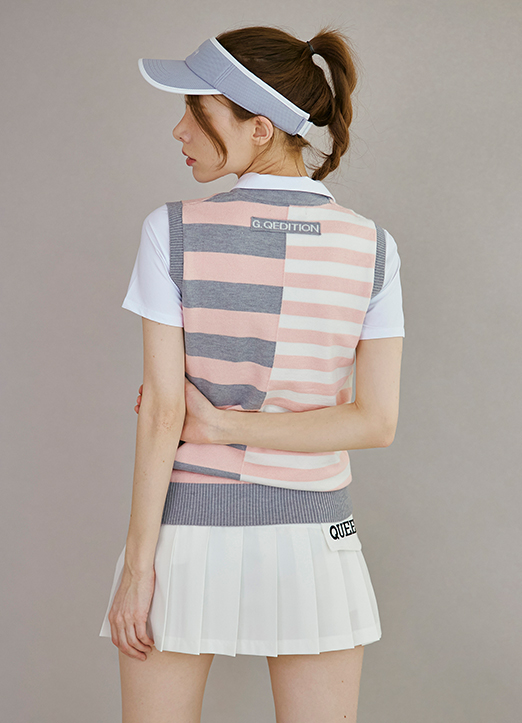 [QoG] Ribbed Edge Unbalanced-Stripe Knit Vest