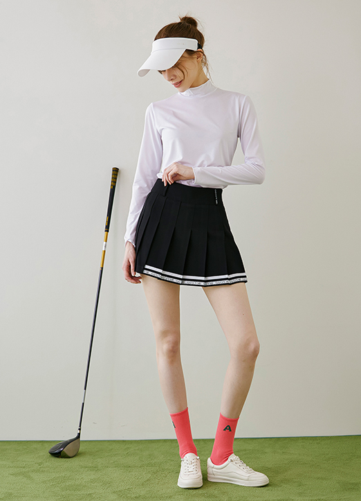 [QoG] Contrast Lettering Tape Point Pleats Skirt w/ Inner Shorts