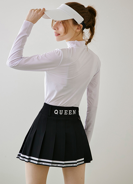 [QoG] Contrast Lettering Tape Point Pleats Skirt w/ Inner Shorts