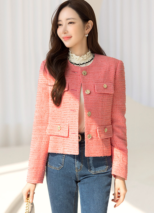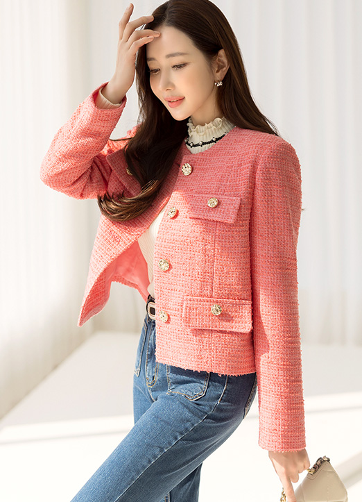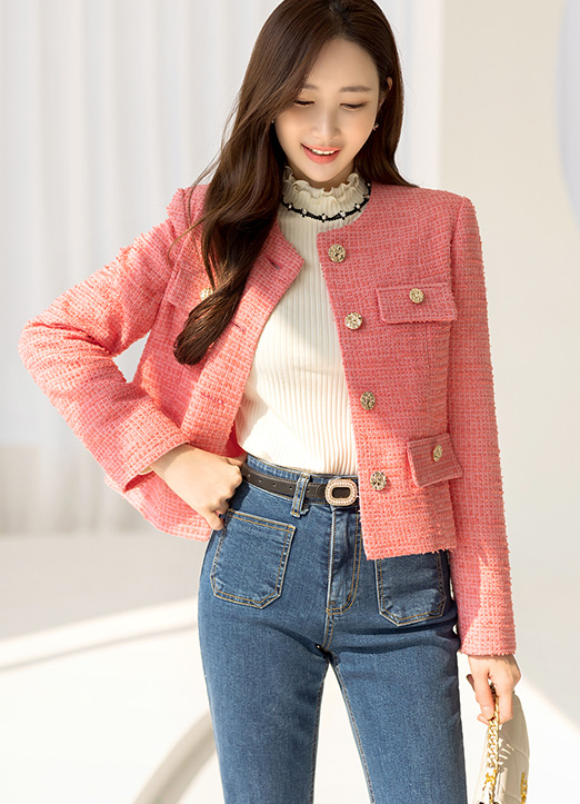 적당한 두께감으로 간절기 시즌에 활용하기 좋은 트위드 자켓이에요