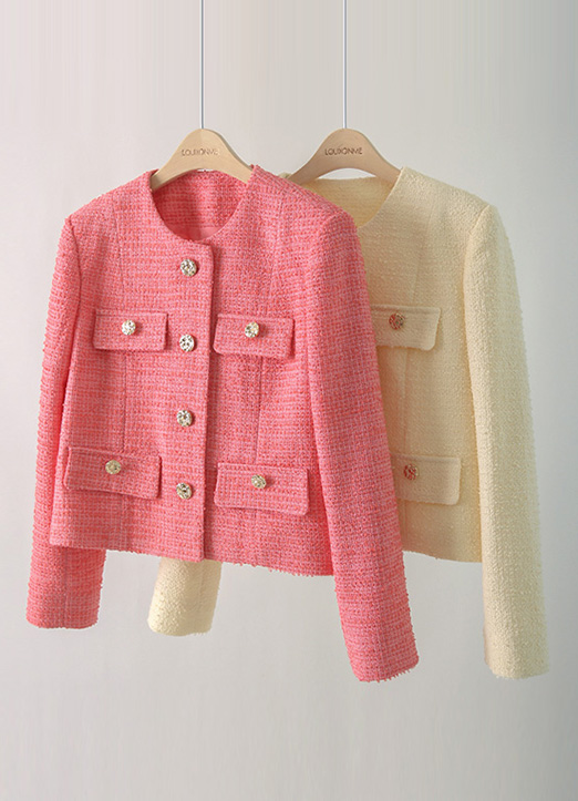 [Louis Angel] Gold Button Collarless Tweed Jacket