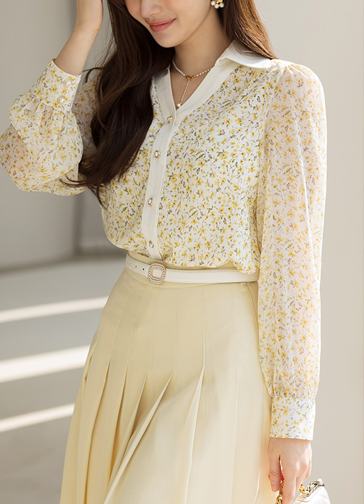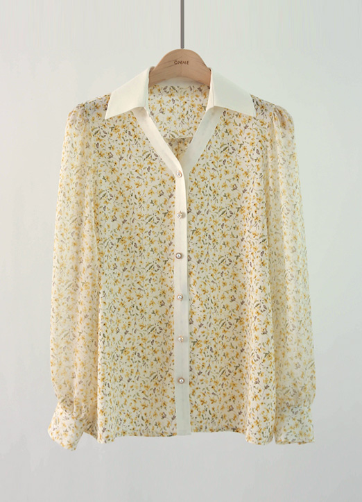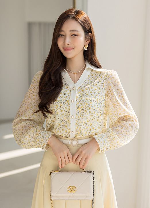 [Louis Angel] Contrast Trim Yellow Floral Blouse