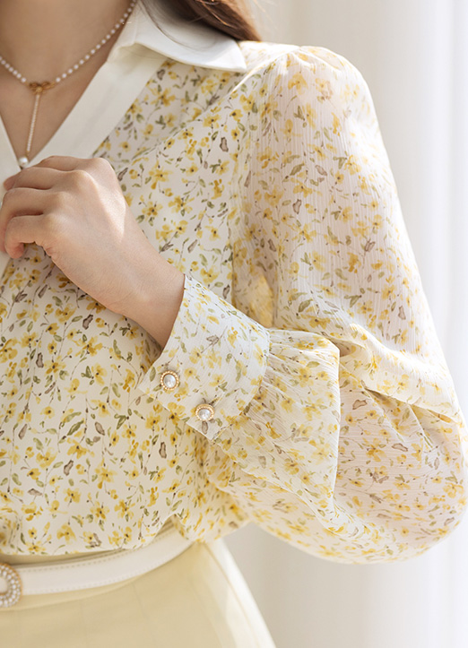 소프트한 옐로우 컬러의 플라워 패턴으로