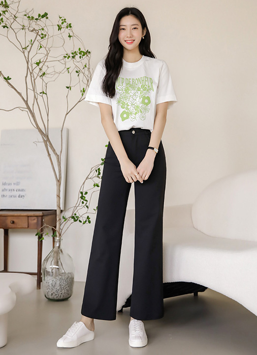 부츠컷으로 살짝 퍼지는 와이드 핏이라 군살을 쏙 커버해주고