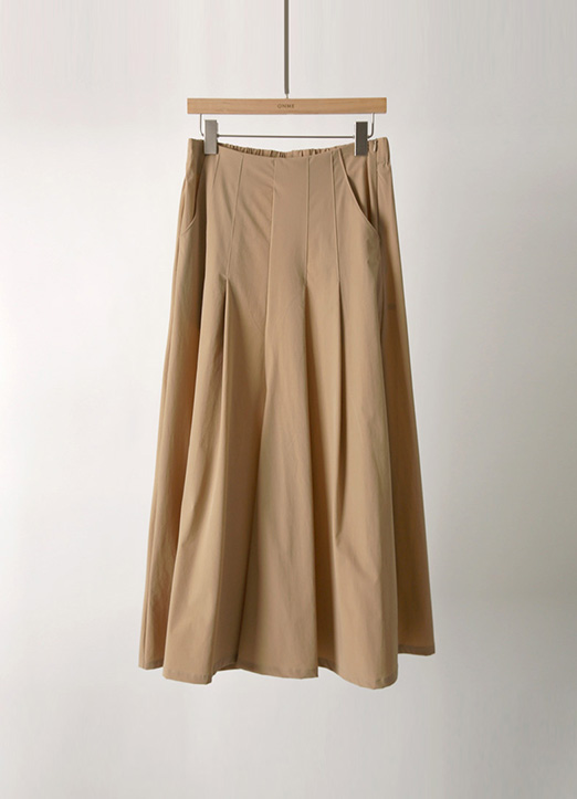투핀턱으로 잡아준 핏이 아래로 은은하게 퍼지는 디자인으로 나와