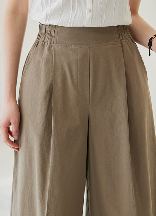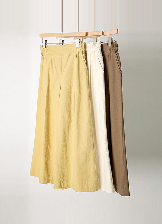 핀턱라인으로 깔끔하게 툭 떨어지는 이지한 무드의 와이드 코튼 팬츠