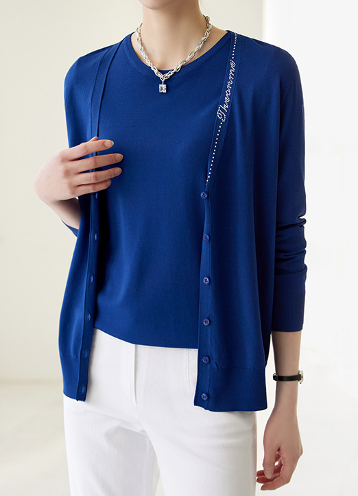 넥라인 비즈 포인트가 얼굴을 화사하게 밝혀주는 비스코스 가디건