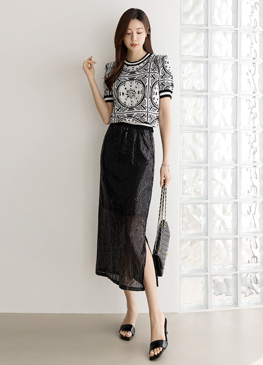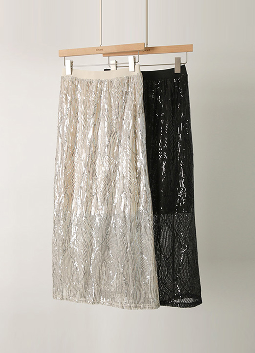 매끄럽게 착용되는 스팽글 스커트에요~