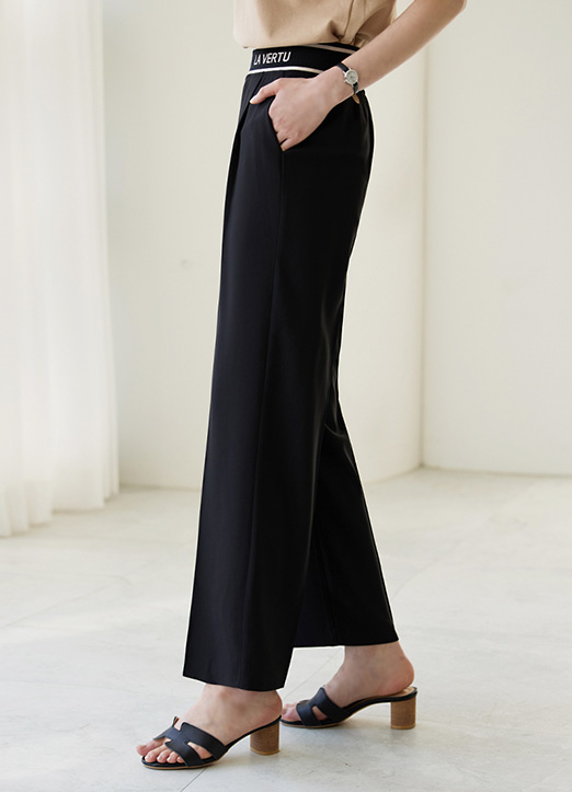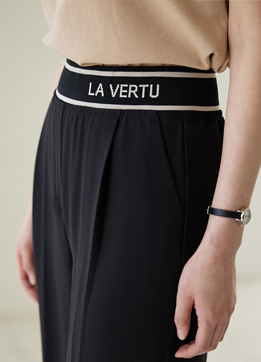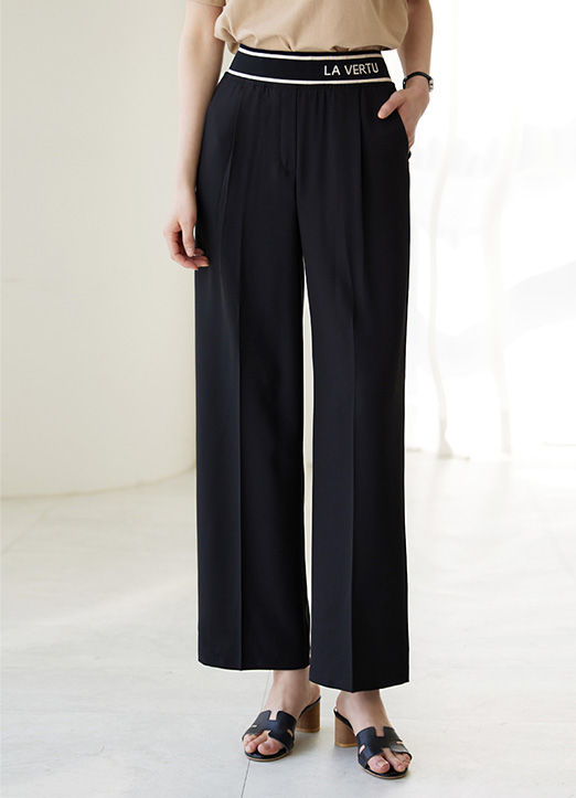 레터링 밴딩으로 트렌디한 포인트와 편안한 착용감을 선사하는 슬랙스