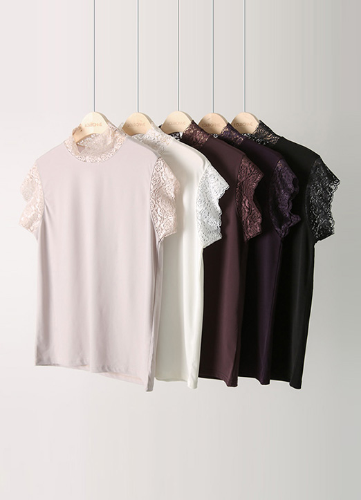 (5 Colors) Lace Mock Neck Cap Sleeve Top
