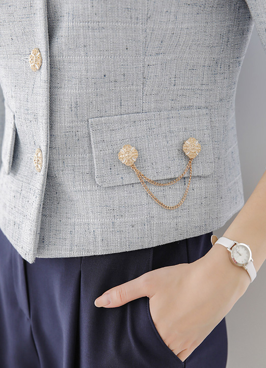 볼드한 골드쥬얼리 버튼이 고급스럽고 화사하게 밝혀주어
