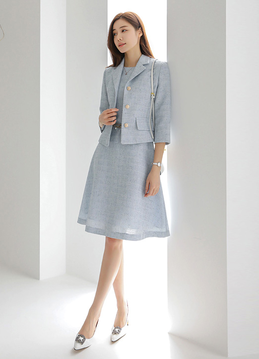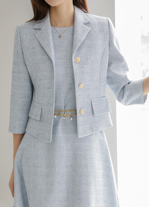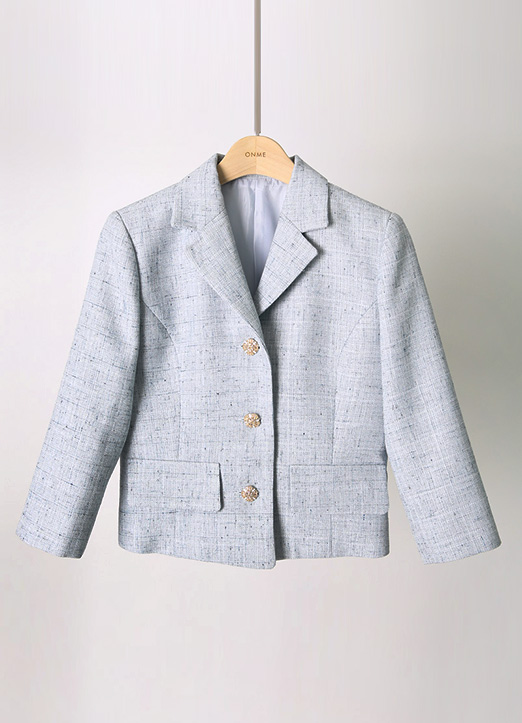 슬라브 패턴의 트위드 소재로 시원하게 연출되는 자켓이에요 :)