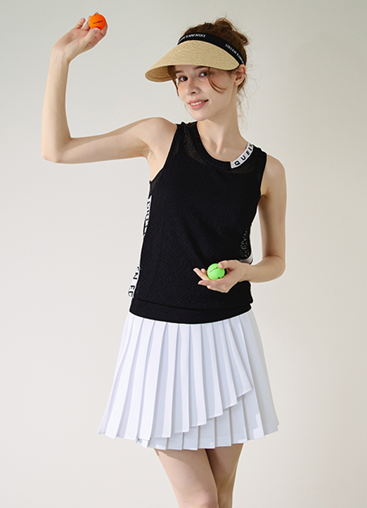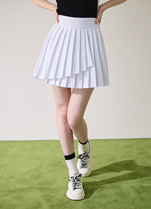 [QoG] (4 Colors) Piping Unbalanced Pleats Skirt w/ Inner Shorts