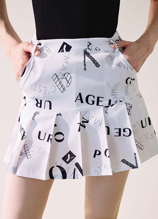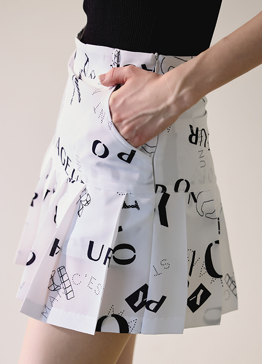 [QoG] Allover Letter Print Pleats Skirt w/ Inner Shorts