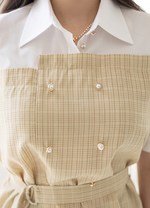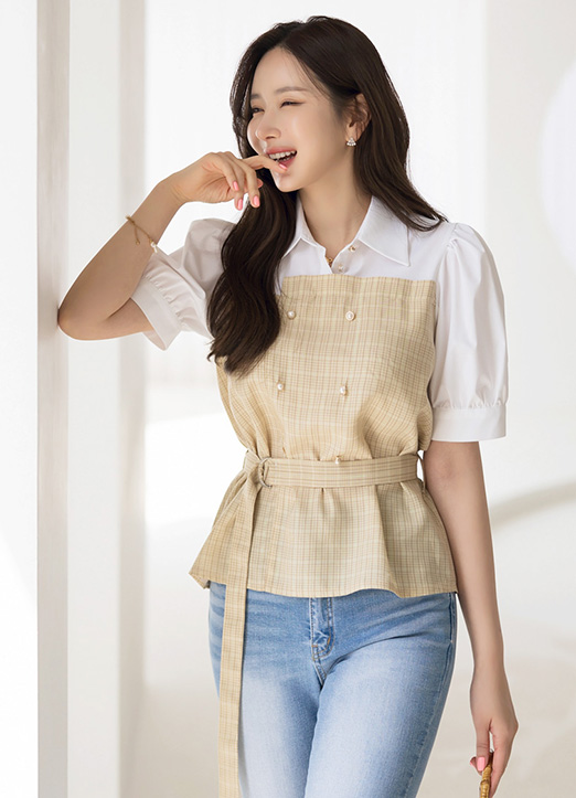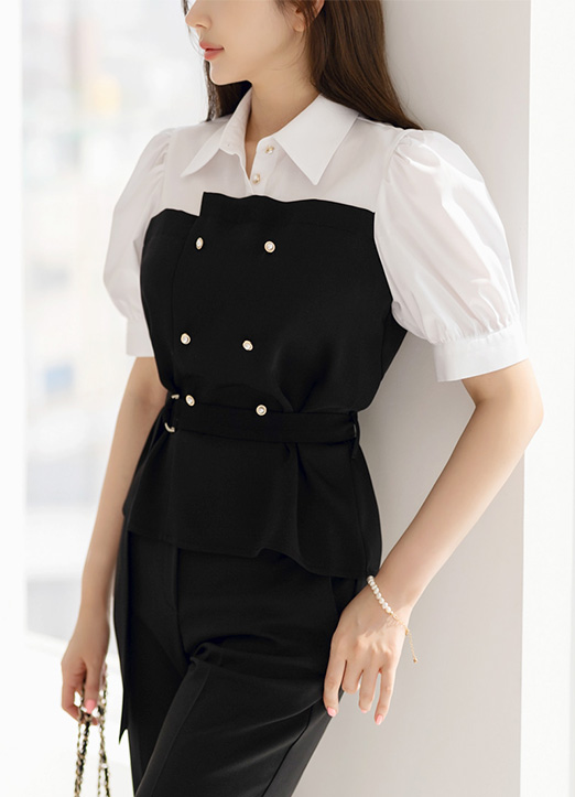 [Louis Angel] Contrast Bustier Layered Look Shirt w/ Belt