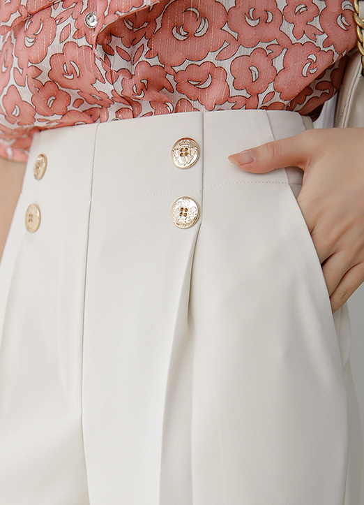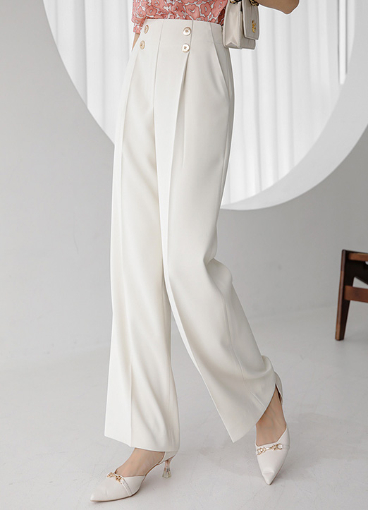 High Rise Double Gold Button Pintuck Semi Wide Slacks
