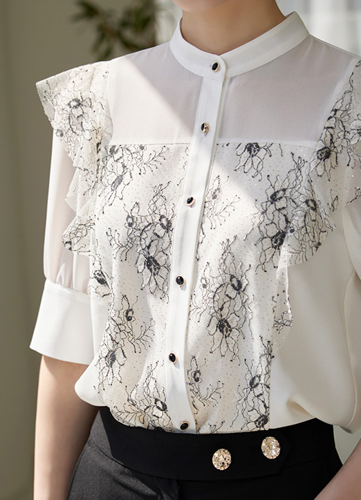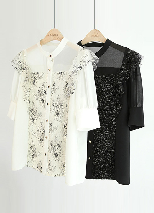 펄이 가미된 플라워 레이스로 화사하고 고급스러운 블라우스
