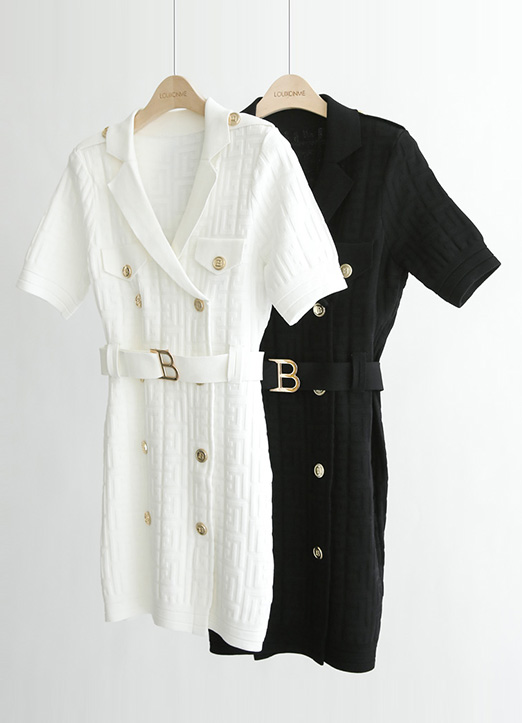 Double Breasted Textured Knit Dress w/ Belt