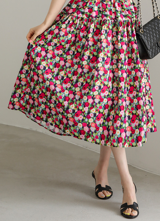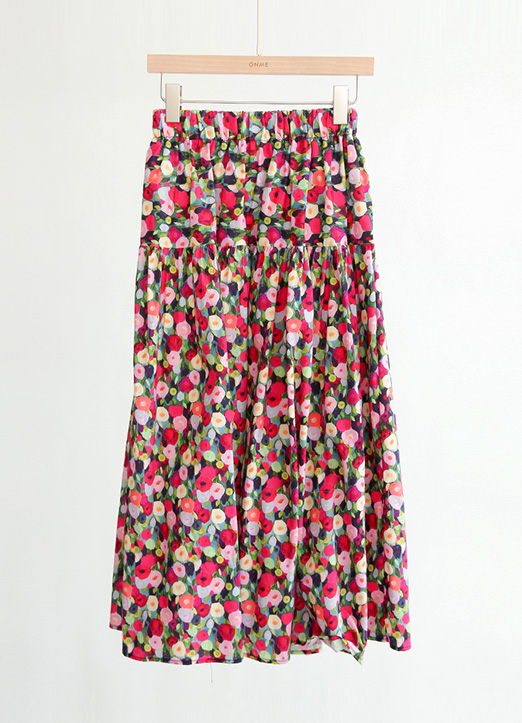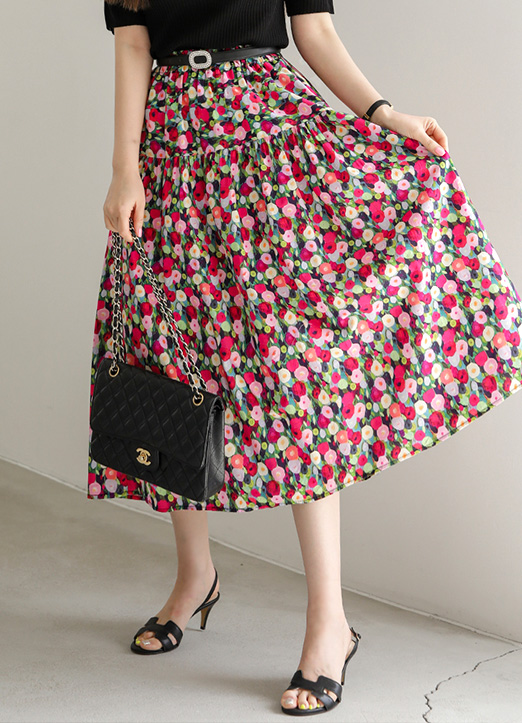 [LouisAngel] Elastic Waist Vivid Flower Tiered Skirt