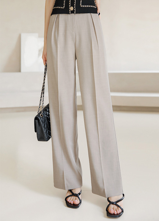 (4 Colors) High Rise Linen-Like Stretch Semi Wide Slacks