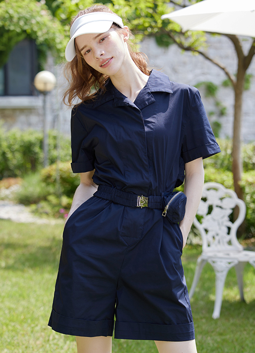 [QoG] Collared Short Jumpsuit w/ Elastic Waist Bag
