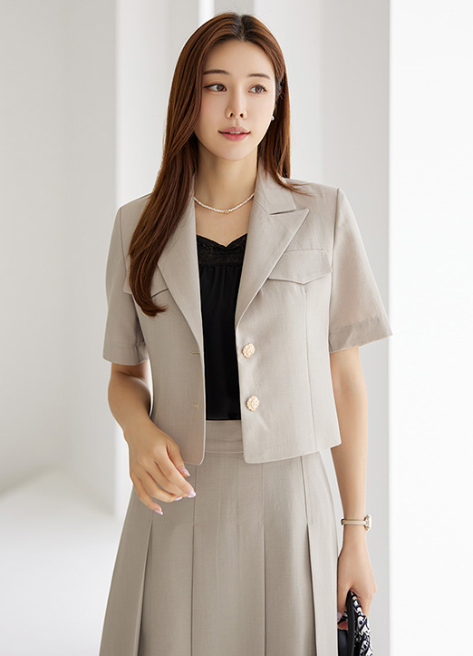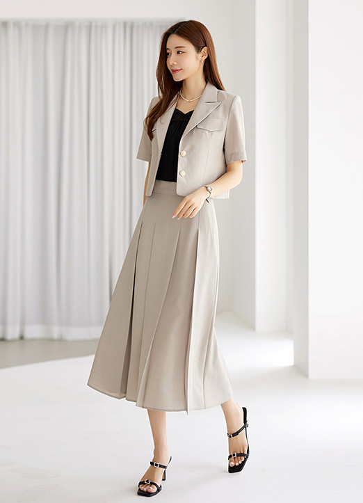 Comes as a part of a skirt suit with Elastic Waist Back Hidden Side Slit Pleats Skirt_Summer Ver.]