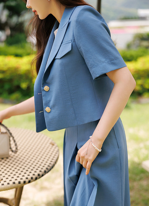 [Louis Angel] Jewel Button Peak Collar Short Sleeve Tailored Jacket