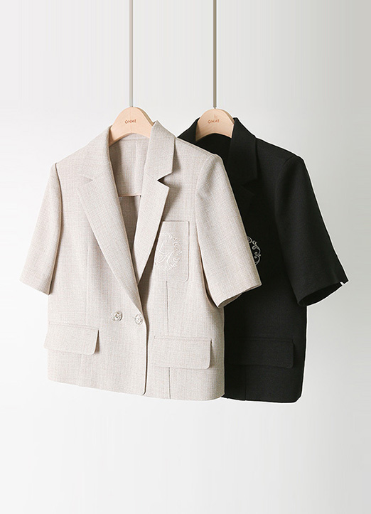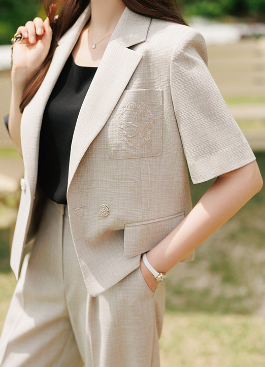 [Louis Angel] Double Breasted Half Sleeve Linen-Like Tailored Jacket