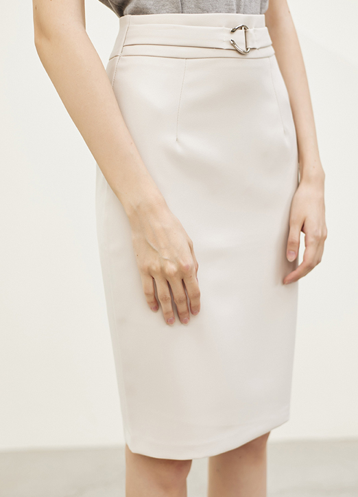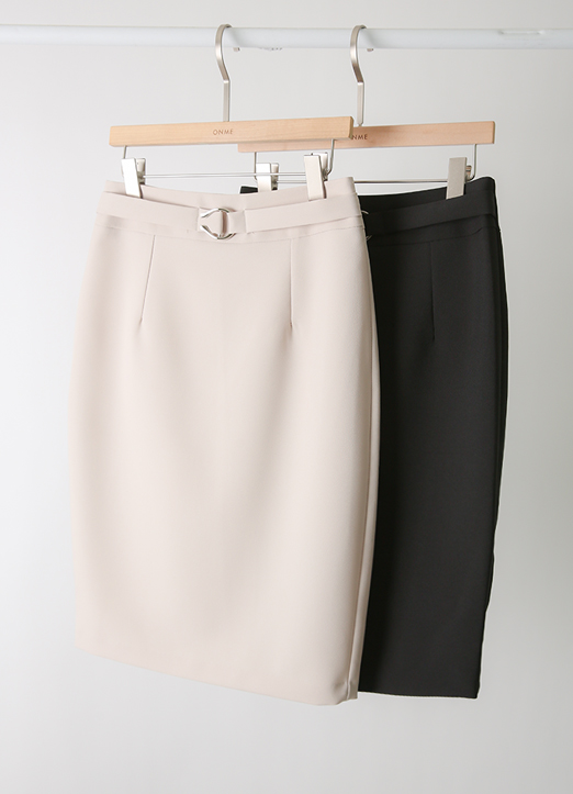 [The Onme] Waist Buckle Detail Back Slit H-Line Skirt