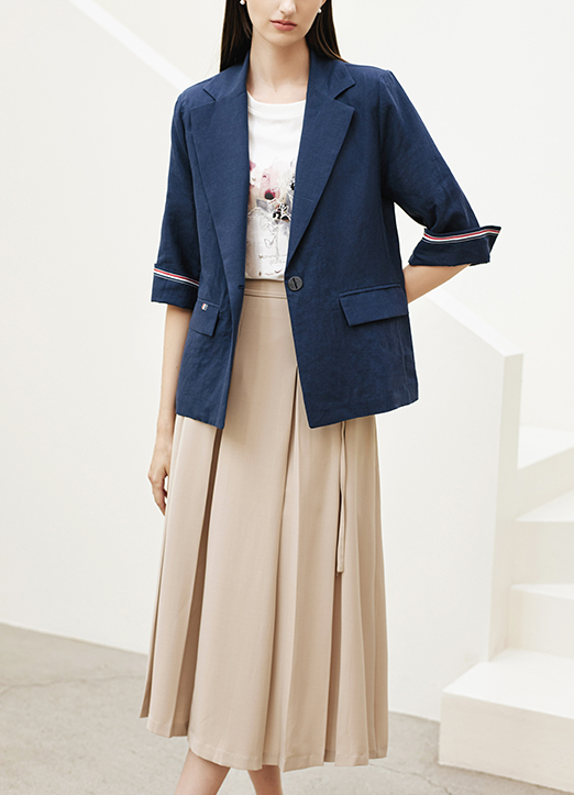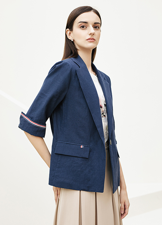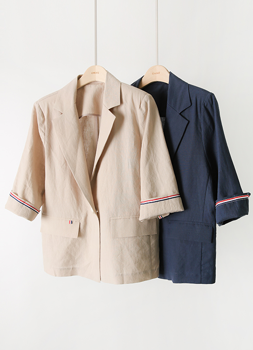 [The Onme] Linen100 Tape Trim Roll-Up Half Sleeve Jacket