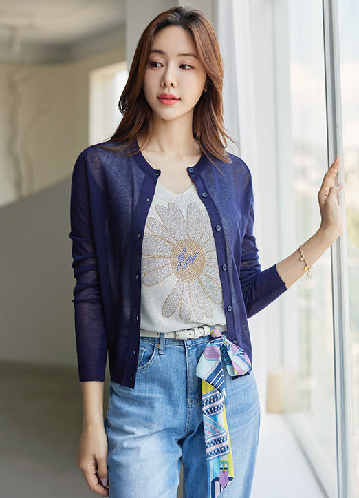 쾌적하고 시원하게 착용되는 니트 가디건이에요