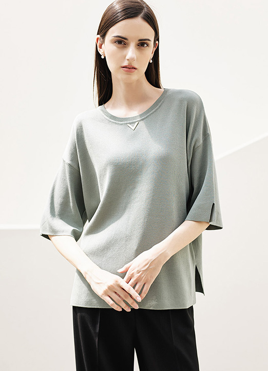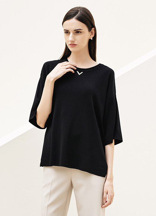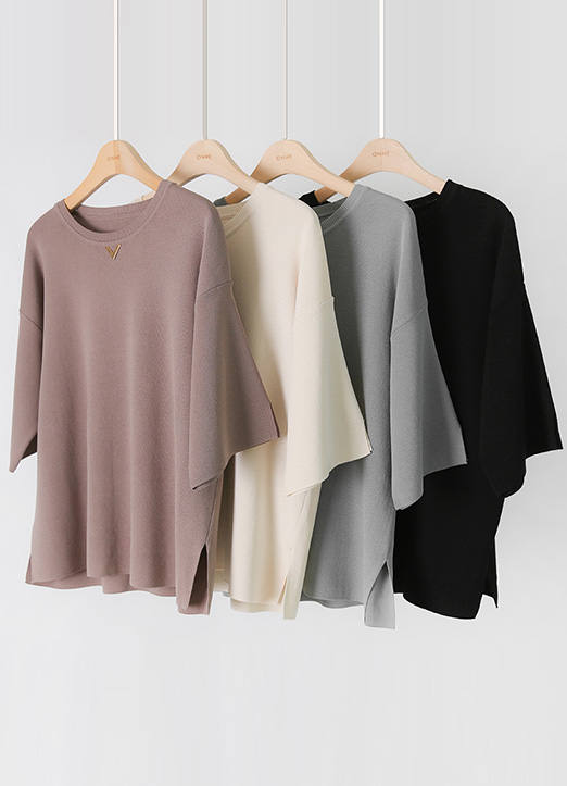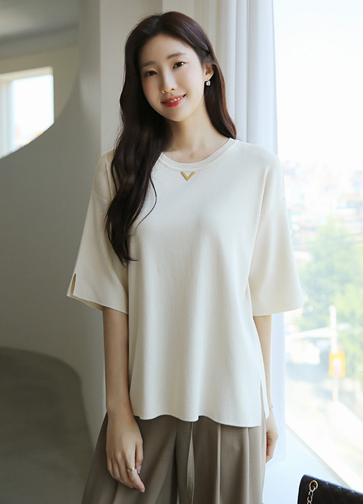 [Louis Angel] (4 Colors) Gold V Detail Half Slit Sleeve Loose Knit Top